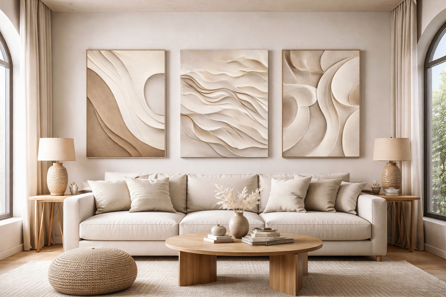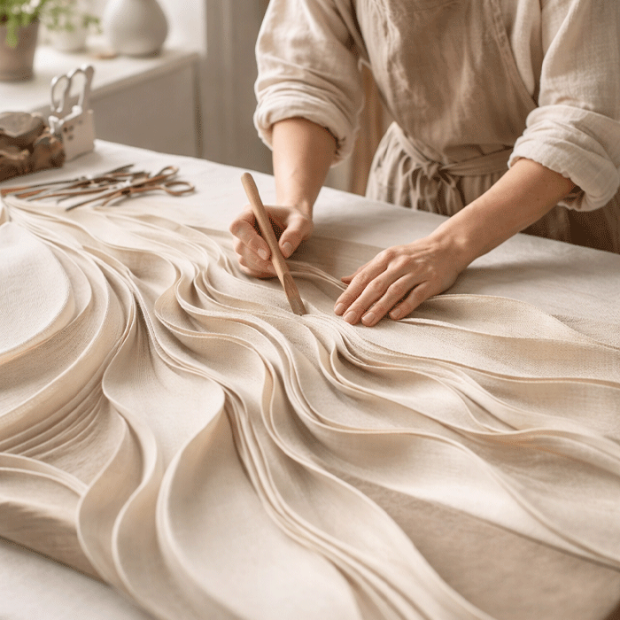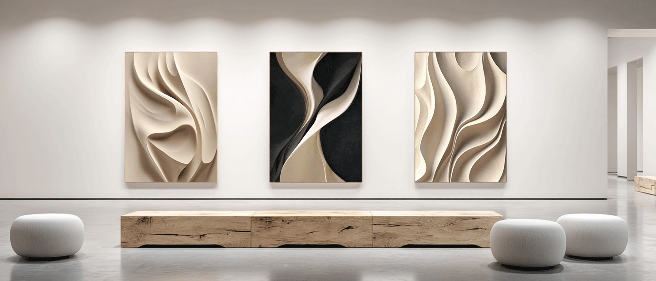 Elevate your space with layered textile art, crafted by hand for modern interiors.